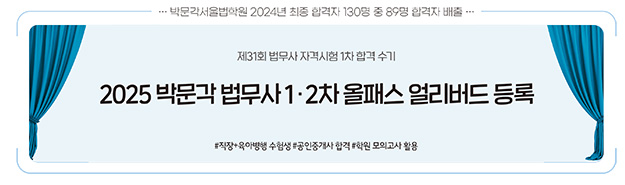[Á¦31ȸ ¹ý¹«»ç ÀڰݽÃÇè 1Â÷ ÇÕ°Ý ¼ö±â] 2025 ¹Ú¹®°¢ ¹ý¹«»ç 1¡¤2Â÷ ¿ÃÆÐ½º ¾ó¸®¹ö..