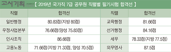 [°í½Ã±âȹ °í¿µ¹Ì ±âÀÚ] 2019³â ±¹°¡Á÷ 7±Þ °ø¹«¿ø Çʱâ½ÃÇè Çհݼ± ¹× ÇÕ°ÝÀÚ ¸í´ÜÀÌ ¹ßÇ¥µÆ´Ù.