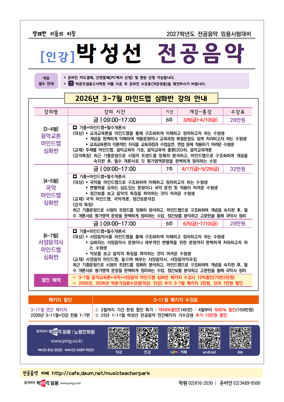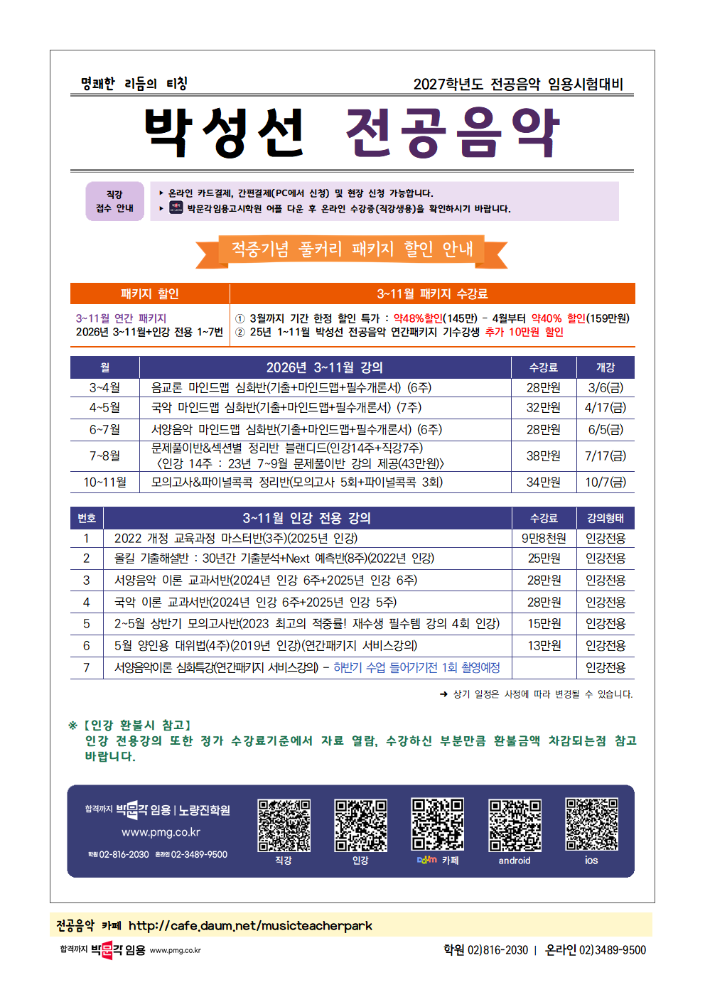 | Á¦¸ñ : [¹Ú¼º¼± Àü°øÀ½¾Ç] 2026³â 3-7¿ù °ÀÇ ¹× 3-11¿ù ÆÐŰÁö ¾È³»! |